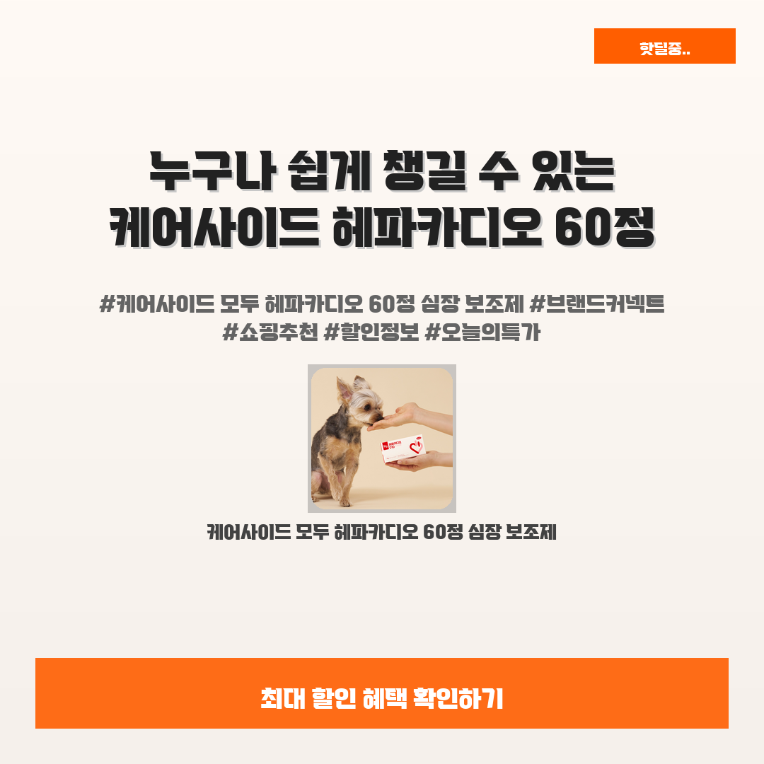 🛍️ 이 포스팅은 네이버 쇼핑 커넥트 활동의 일환으로,판매 발생 시 수수료를 제공받습니다.오늘 소개할 제품은 바로!누구나 쉽게 챙길 수 있는 케어사이드 모두 헤파카디오 60정 심장 보조제입니다!많은 분들이 요즘 심장 건강에 신경 쓰고 계실 텐데요, 어쩔 수 없는 스트레스와 불규칙한 생활으로 인해 심장 건강이 걱정이라면, 이 제품이 해결책이 돼줄 수 있습니다.저는 매일 바쁜 일상 속에서 심장 건강을 챙기기가 어렵다는 고객의 마음을 이해합니다. 그래서 이 보조제를 선택하게 되었는데, 효과가 확실해서 주변에 누구에게나 추천하고 싶네요!가격도 38,000원에서 22,800원으로 할인되어 가성비까지 완벽하니, 지금 바로 챙겨보세요. 여러분의 행복한 건강을 위해 필요한 선택이 될 거예요!※ 이거 진짜 제가 직접 ..